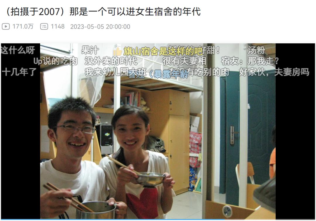 比如 B 站 UP 摩的司机徐师傅,现在早就中年发福的他,孩子都能打酱油了,却因为在大学时记录了自己和老婆刚谈恋爱的琐碎日常,愣是出了个播放量过千万的大学生活合集。