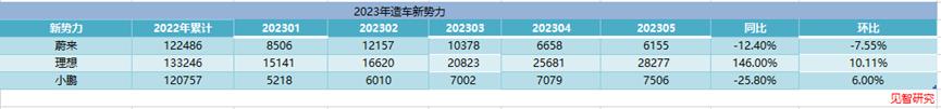 今年上半年,三家销量分化极为严重,理想顺风顺水的进行了环比持续增长,从一月的1.5万辆增长至5月的万辆;