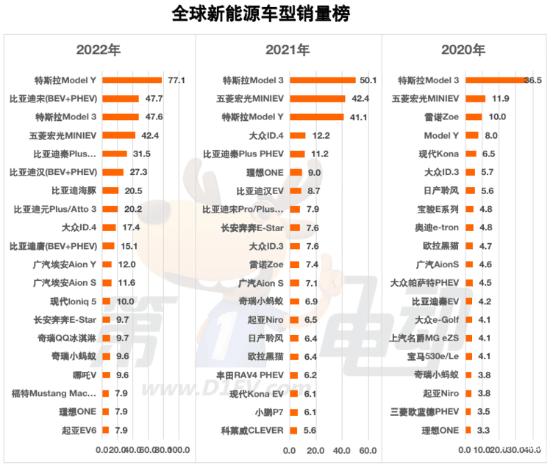 2022年全球新能源车品牌销量TOP20中,中国品牌占10席,占据半壁江山。