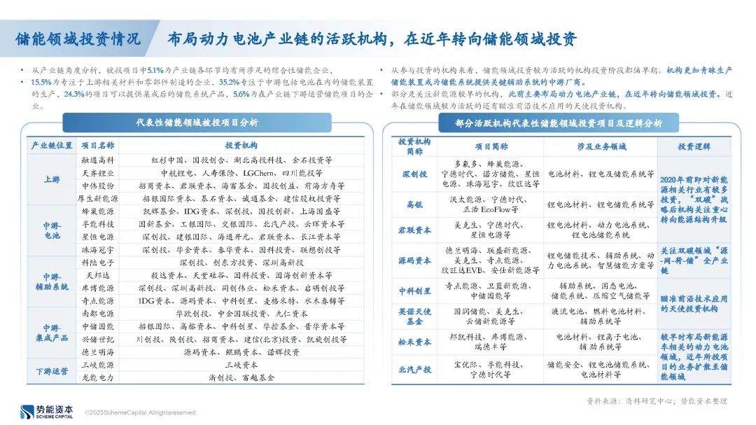 分析重点机构出手案例不难发现,早年布局动力电池领域的投资机构的投向正逐渐转向储能领域,具备核心环节自研能力的中游系统商更受青睐。