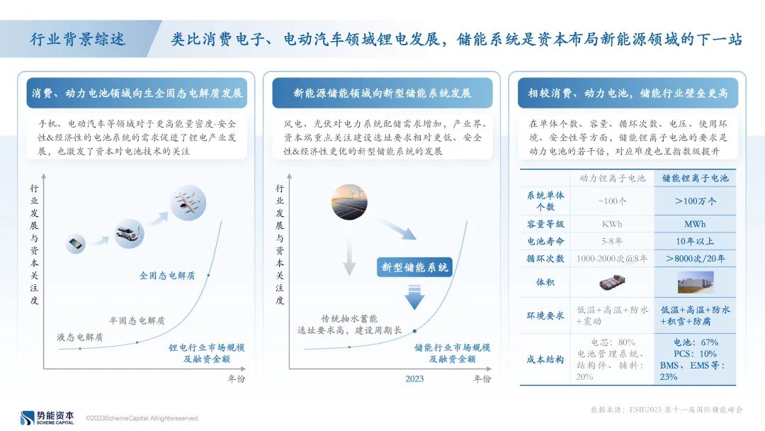 (5)从资本市场维度观察,类比消费电子、电动汽车领域锂电发展,储能系统是资本布局新能源领域的下一站。