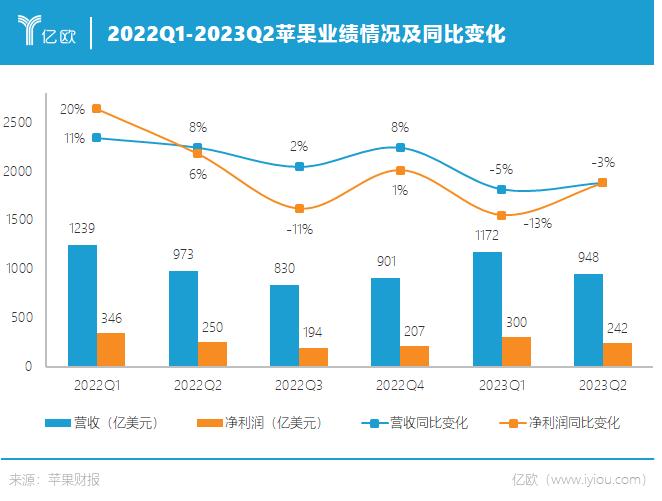 根据苹果5月初发布的最新财报,2023年第二财季(2023年1月1日-2023年4月1日),公司实现营收948亿美元,净利润242亿美元,同比双双下滑3%,而在上一个财季(2022年9月25日-2022年12月31日),这两项数据的跌幅还要更大。