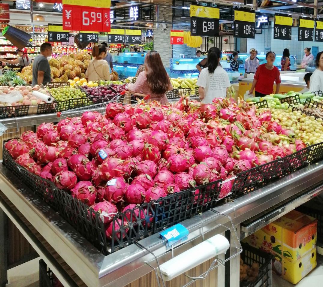 对于线下商超来说,水果和蔬菜是线下商超引流的核心品类。然而,当下生鲜市场的抢夺过于严重,水果销售大规模从线下转移到线上,各种社交平台、拼团甚至用高频、低价来吸引消费者,还有不少生鲜产品走进“网红”直播间,以及产地直播等方式,让实体水果渠道分流不少。