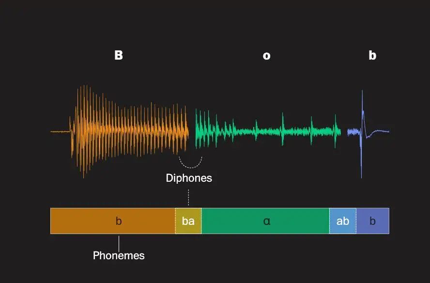单元选择技术下,「Bob」这一词语能被拆分成不同语音元素,图自《华盛顿邮报》