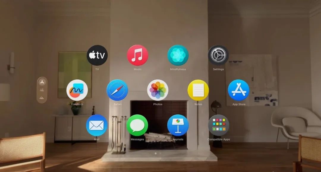 按照苹果的说法,它可以创造一个完全沉浸式的空间,戴上它后,你看到的背景可以变成大森林等场景。而且所有App都有它们的大小体积甚至有阴影,让你感觉它们是真实存在的。