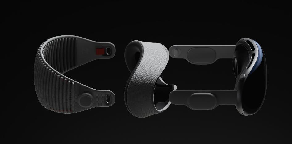 耳机面罩和表带采用布衬和模块化设计,苹果表示它们可以弯曲以适应各种脸型和头型。