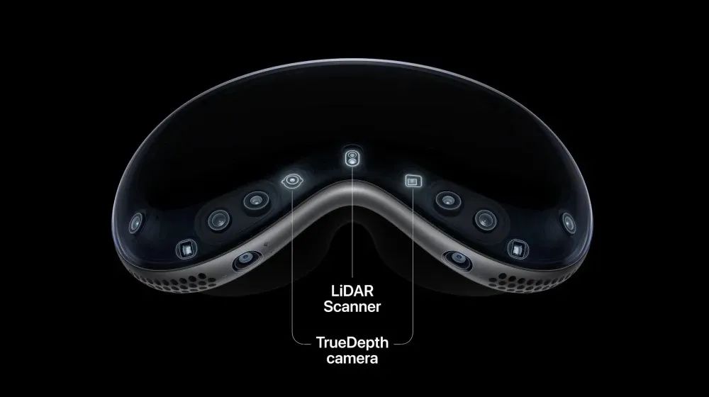 Vision Pro的整个机身包含了12 个摄像头、5个传感器、两块4K的Micro OLED显示屏。苹果在这款设备上使用了两颗芯片,一颗是苹果其他设备都会用到的M2,另外一颗是专门为AR打造的R1芯片。R1 芯片主要负责传输,官方称传输数据12毫秒就可以触达,比眨眼的速度还快。此外,该头显采用全新的操作系统VisionOS,有专门的应用商店。