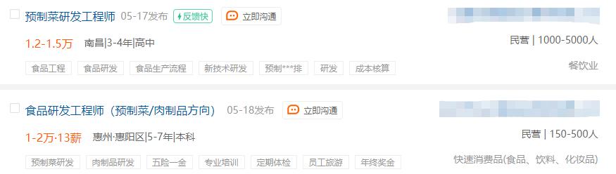 目前,从招聘平台上也可以看到,针对研发工程师这一岗位,不少企业给出了1-1.5万元/月的高薪资待遇,甚至有个别大型预制菜企业开出了超2万的月薪来招兵买马。