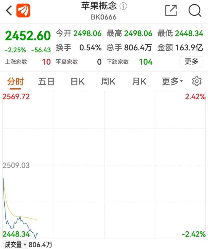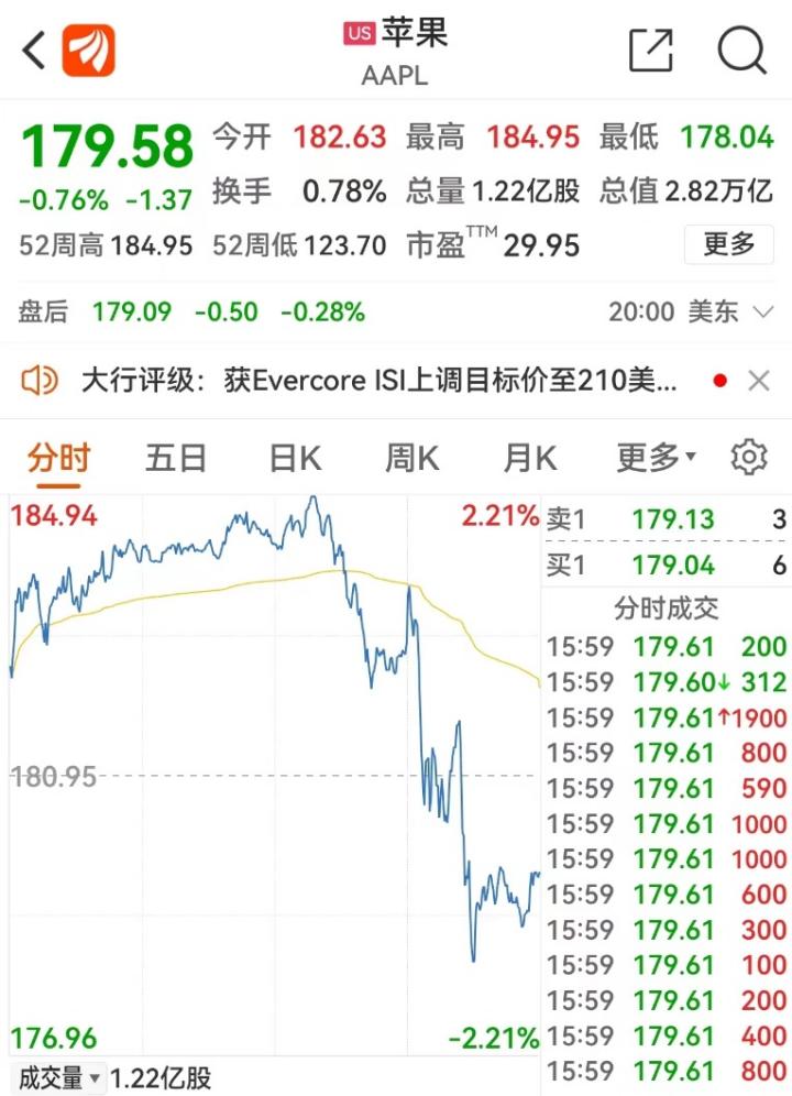苹果股价立刻跳水
