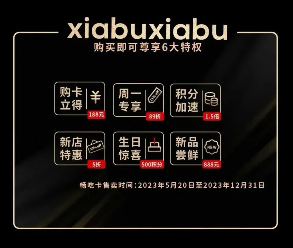 据品牌介绍,这张价值208元的会员卡可通用于其旗下包括呷哺呷哺、湊湊、趁烧、茶米茶、呷哺食品在内的5大品牌,并可享受购卡、折扣、积分、新店、生日、新品等6大特权。