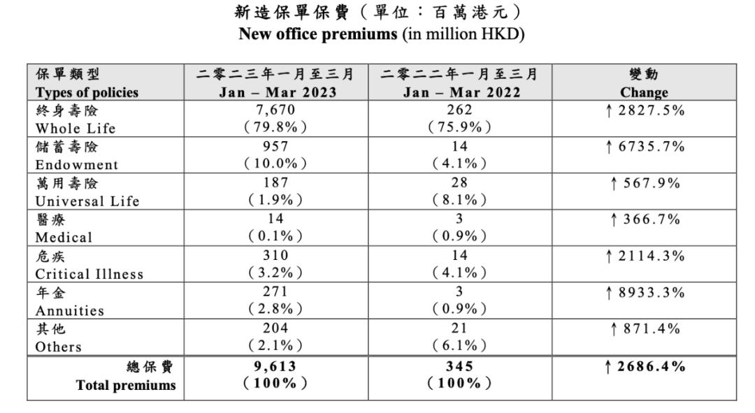 对于一季度内地赴港投保激增,香港保险业监管局解释为:“跨境人流恢复正常释放了压抑多时的需求,加上去年同期基数较低。”