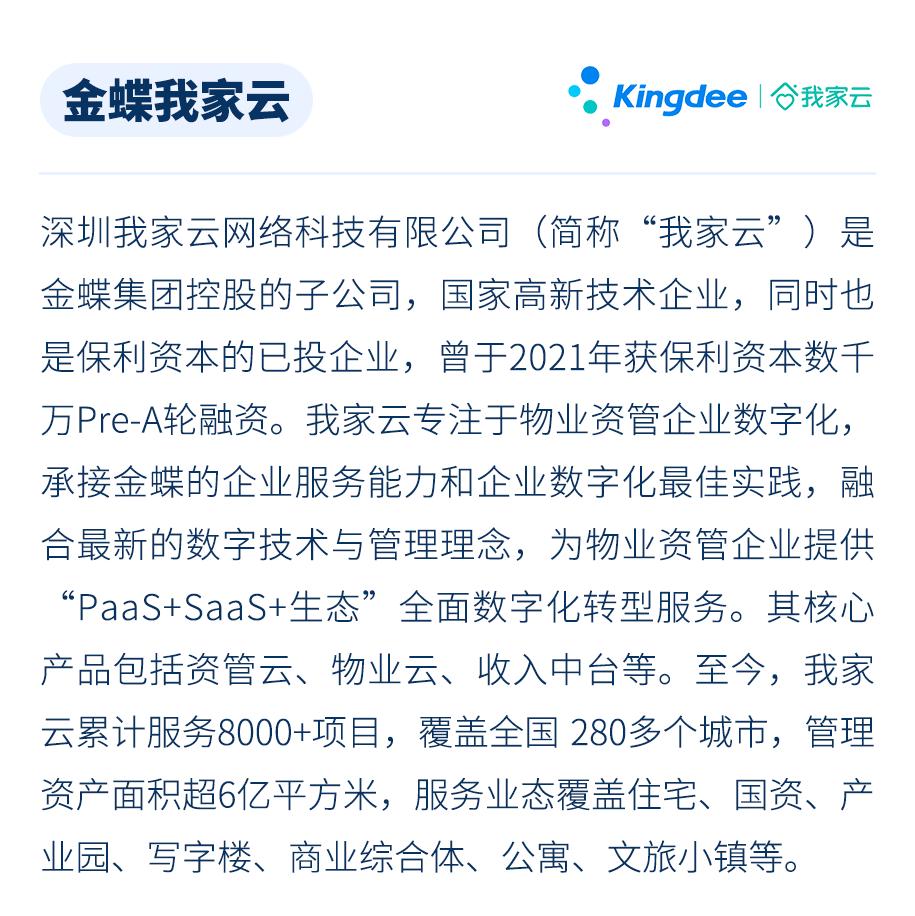 值得一提的是,我家云于2021年获得了保利资本的投资,也印证着保利资本推动物业运维数字化转型的不懈努力。保利资本持续在投后赋能上给予我家云支持,提高我家云的市场规模和品牌价值。我家云逐步得到了第一太平、越秀、高力国际、招商等头部企业的认可,市场品牌辨识度越来越清晰,今年我家云还获得了国家高新技术企业和专精特新企业资质。未来,保利资本也将继续为“共筑美好人居”的目标发力,以自身行动支持物业行业数字化发展。