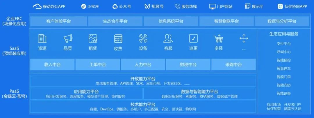针对中小企业无法像大型物企一样大成本投入的问题,我家云提供一站式SaaS服务。订阅模式的SaaS服务性价比高,可省去企业投入专业设备、专人运维的成本。另一方面,对物业百强、上市的物业公司来讲,他们最关心的是未来高质量持续增长,我家云提供基于统一数字化的底座,通过收入中台,把物业多种经营收入从业、财、税的一站式全链条闭环的视角实现统一管理。同时提供以金蝶云·苍穹为数字基座,帮助企业自主创新、丰富业务场景,整合生态应用或资源。