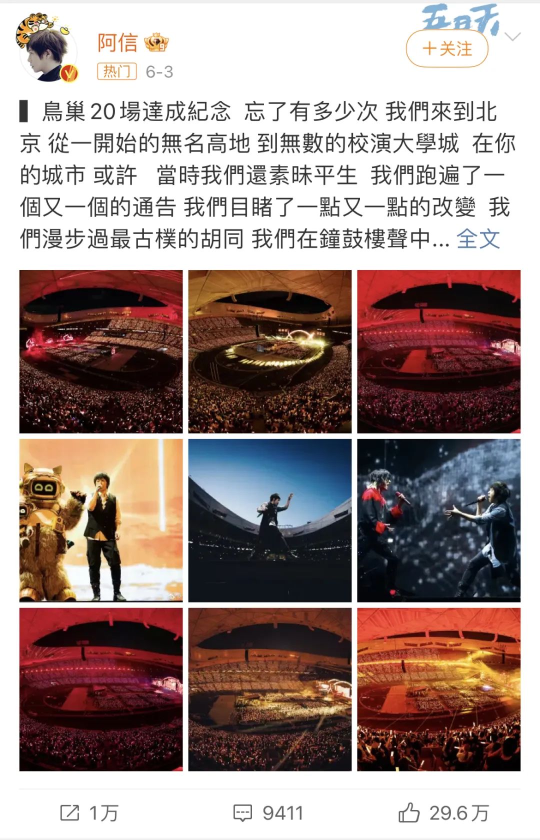 2012年,五月天演唱会在北京鸟巢首度开演,此后便成了鸟巢的“常客”,截止到刚刚结束的诺亚方舟复刻演唱会,他们已经在鸟巢办了20场演出。