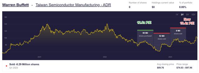 在巴菲特购买台积电股份时,肯定有很好的考虑,包括有吸引力的估值和健康的盈利能力。巴菲特在 2022 年第三季度建仓时,股价在 68.5 美元至 91.5 美元之间波动,平均收盘价为 82.5 美元。其 2022 年每股收益约为 6.6 美元。结果,那段时间的平均市盈率只有 12.5 倍左右,这是一个相当有吸引力的水平。