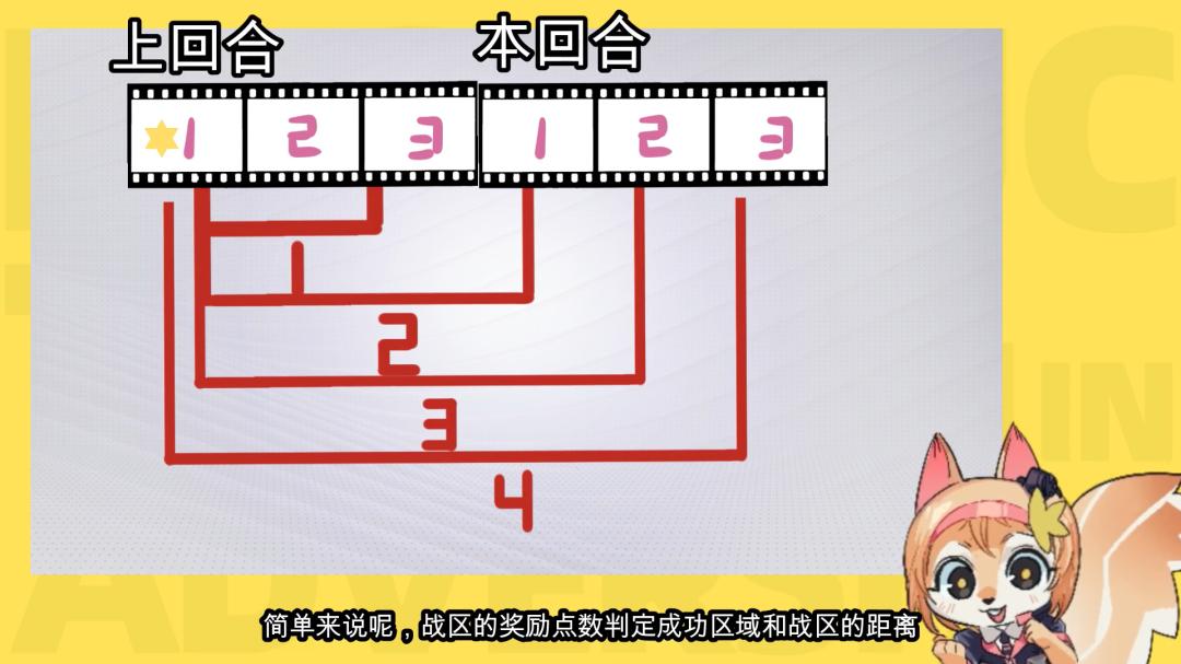 为了进一步削弱随机成分的影响,游戏加入了会随机给区域赋予buff或debuff的「场地」规则,使得双方玩家能够在决策阶段获得一些同步的信息,加强博弈性。而后来加入的「战区」规则让下回合的得分直接与上回合的战况相关,相当于在前后回合之间建立起了联系,让玩家可以通过更大的信息量来预测对手的动向,进一步加深了策略性。到了这一步就已经不是「石头剪刀布」游戏可以比喻的了,而是更像卡牌对战游戏的博弈感。