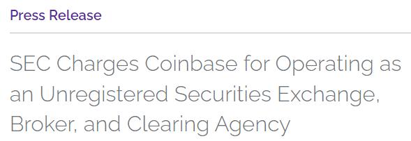 ①美国SEC在官网宣布,正式指控Coinbase公司;