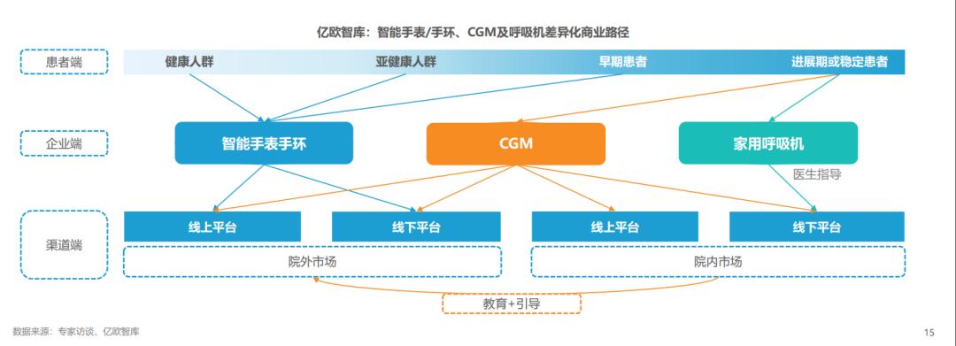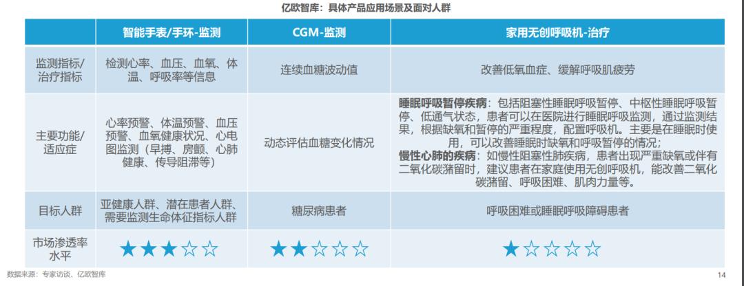 本报告以智能手表/手环、CGM和家用呼吸机为例,从需求-技术-市场-商业的路径,分析不同产品模式。