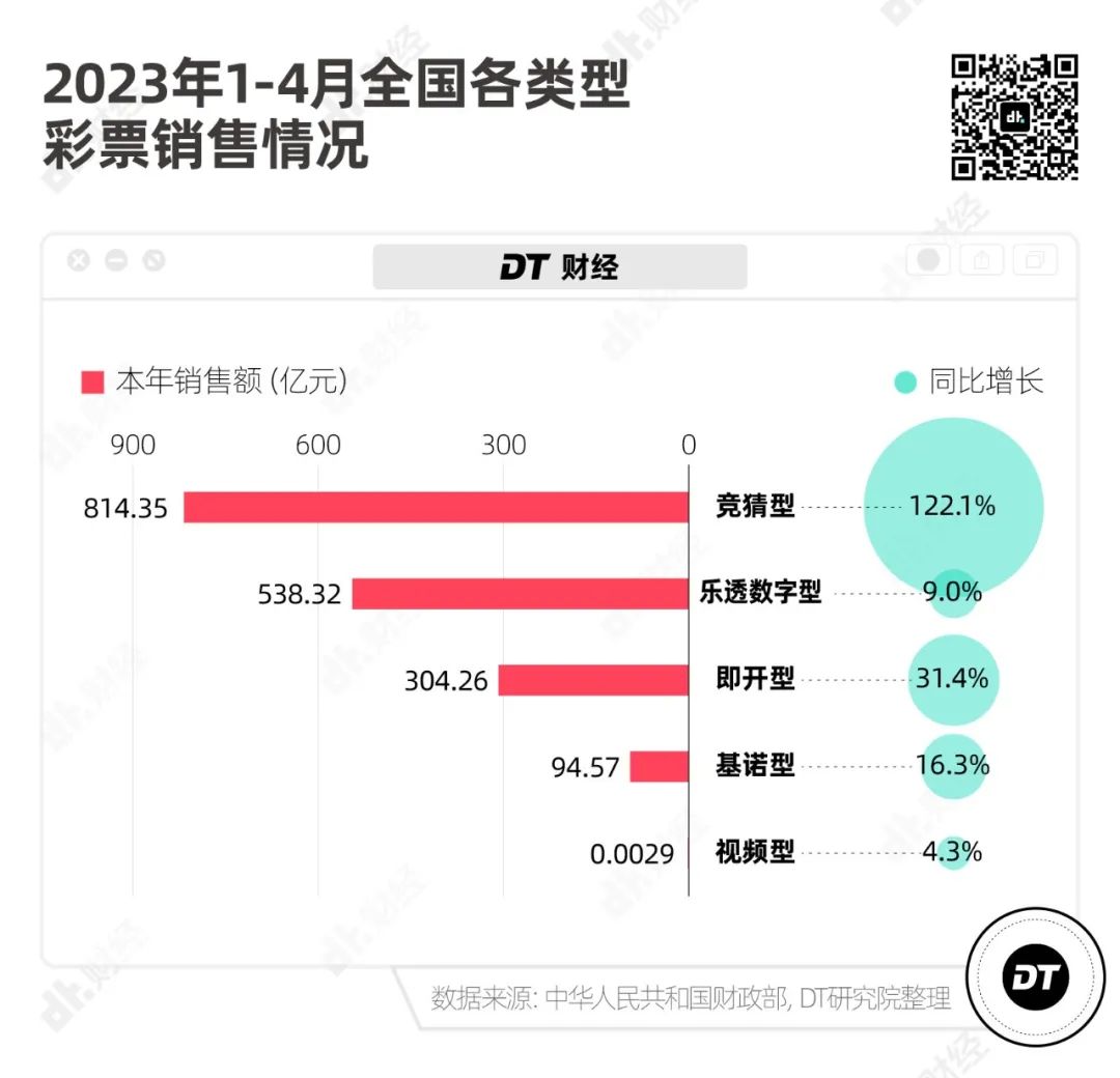 上个月,财政部公布了2023年前4个月的彩票销售数据,销售额逐月上涨,4月单月销售额已经到达到了503.26亿元,同比增长62.0%。