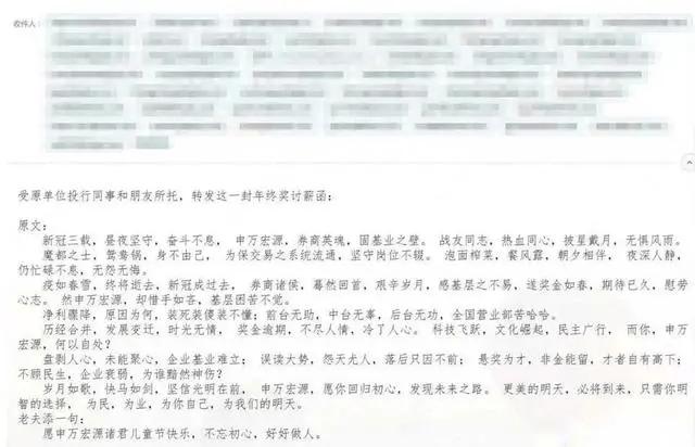 除此之外,申万宏源投行部的一名员工因为奖金问题写了讨薪邮件转发全公司员工。