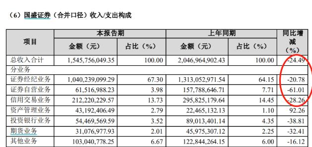 同样,国盛证券2022年总收入下滑24%,经纪业务下滑21%,证券自营业务下滑逾60%,投行业务下滑39%。