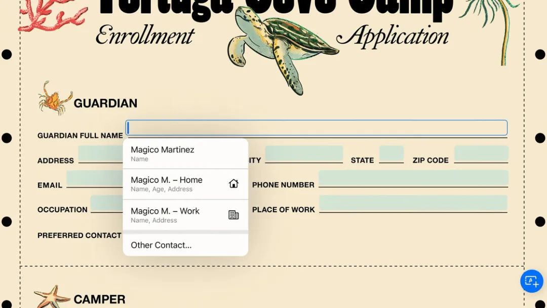 (40:27) 全新的各类机器学习模型可以识别到一个 PDF 中的各种输入框,这样你可以快速填入从通讯录联系信息中抓取的名字、地址和邮箱等内容。