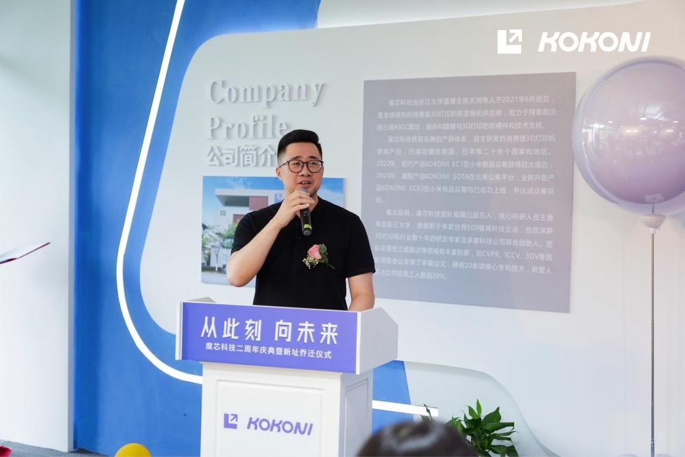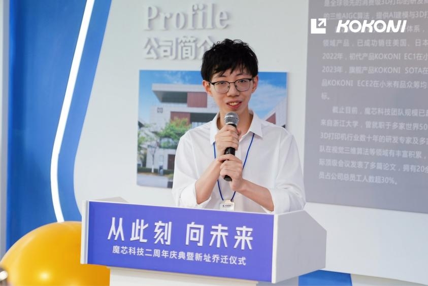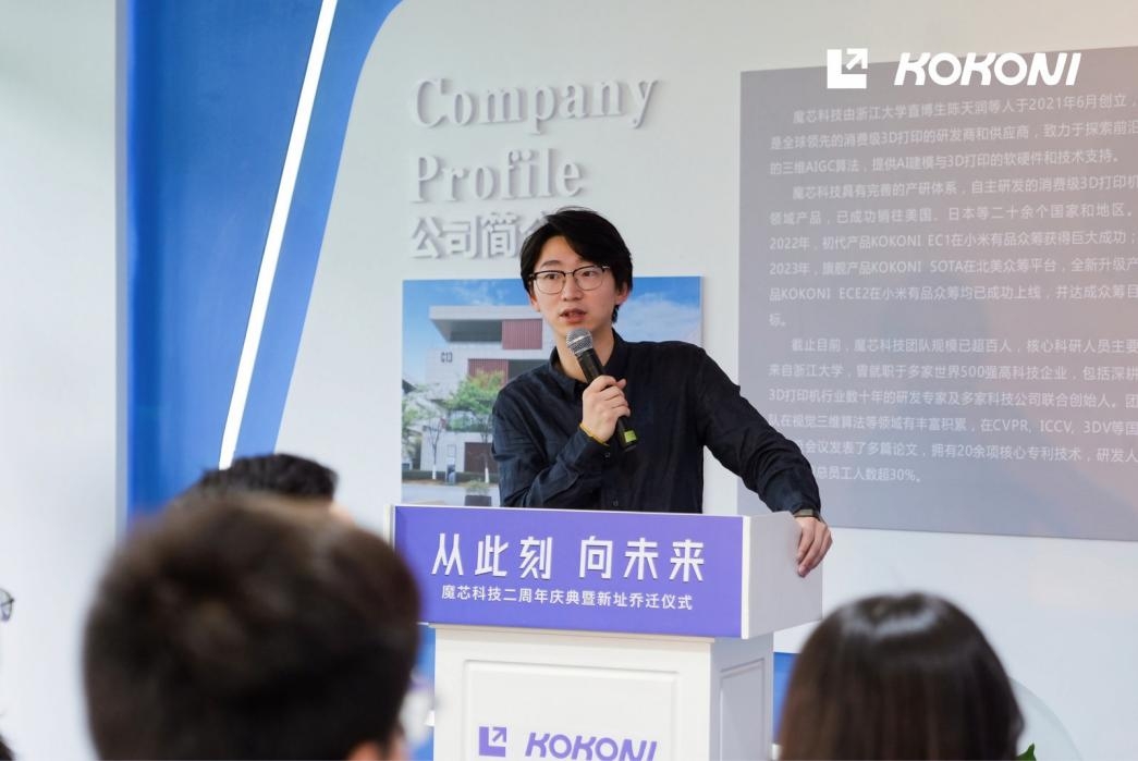 活动当天下午,魔芯科技创始人兼CEO陈天润进行开场致辞,他对莅临本次活动的各位领导和嘉宾表示热烈欢迎,对一直关心和支持魔芯科技发展的合作伙伴及媒体表示衷心感谢,对为公司发展做出巨大贡献的同仁致以诚挚敬意。时光荏苒,初心不变,陈天润回顾了魔芯科技发展至今的创业历程,并对魔芯科技未来的发展前景进行展望,表示魔芯科技将持续在AIGC与3D打印融合领域加大投入,为消费者打造更多充满想象力的产品。