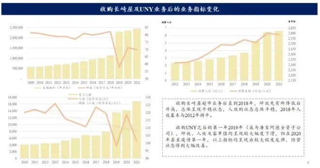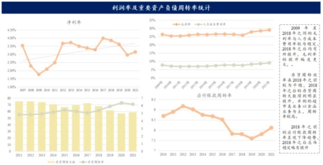 从数据来看,并入综合超市使其短期人效和坪效下降。但后续的经营发展,无论是人效、坪效、毛利率、存货周转率、人次消费金额都在持续提升。