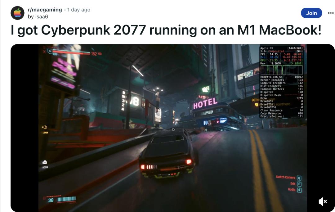 就在 Toolkit 发布不久后,Reddit 不少网友已经在苹果硬件捣鼓之后,玩起了《赛博朋克 2077》和《暗黑破坏神 IV》。