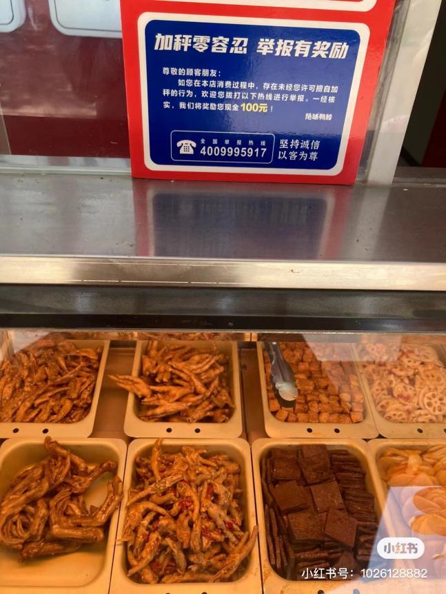 对此,绝味门店甚至还张贴了加秤举报的奖励活动,说明这一现象并不少见。