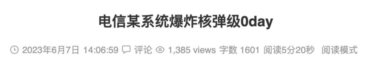 此外,还有一个红客微信公众号说是电信设备爆出了0Day漏洞,导致关键设备被入侵。0Day是网络安全中的一个技术名词,专门用来指代那些危害性极大的漏洞,这些漏洞可以被攻击者直接利用并入侵系统关键区域,一旦在关键系统或是设施中被人利用,轻则系统瘫痪,重则导致重大安全事故。