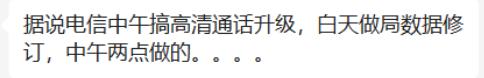 比如有人说是电信在中午搞高清通话升级,结果出现了系统故障,导致服务器被“送走”。