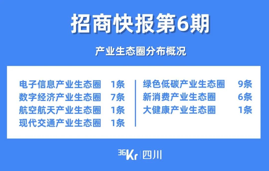 通过对产业生态圈内容的汇总,过去一周的招商动态主要集中在绿色低碳产业生态圈(9条)、数字经济产业生态圈(7条)、新消费产业生态圈(6条)。
