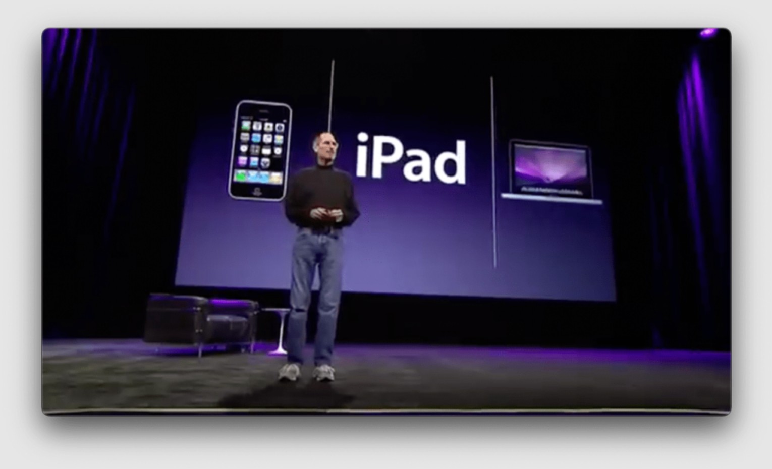 乔布斯接着列出了他认为 iPad 可能更擅长的一些事情,包括网页浏览、电子邮件、查看照片、观看视频、听音乐、玩游戏以及阅读电子书。