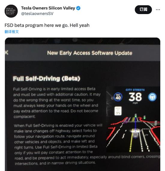 这也意味着,FSD 的测试推广之旅正式开启了。