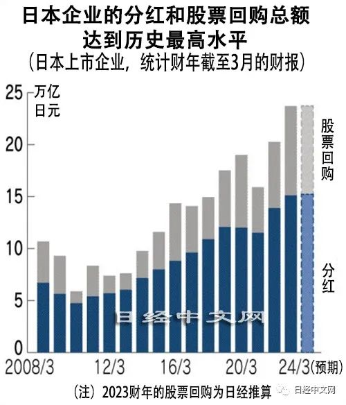 日本上市企业的2023财年预期分红额合计为15.2万亿日元(约合人民币7774亿元),预计连续3年刷新最高纪录。作为股东回报的一环而回购自有股票的行动也呈现接近历史新高的水平。背后存在东京证券交易所实施的举措以及企业经营者意识的改变……