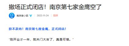 说起来,当年八妹在南京上大学时,仙林大学城最值得一逛的商场就是金鹰湖滨天地。不过这几年,这家老牌百货公司似乎遇到了一些发展困境,去年,南京本地自媒体还曾报道过“南京第七座金鹰,正式闭店!”