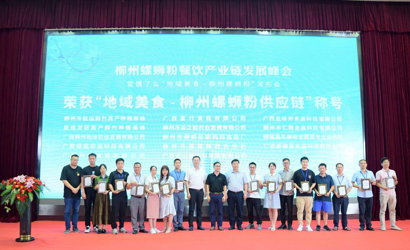 活动中,共有17家螺蛳粉品牌,以及14家美食工厂获得了地域美食授牌。其中既包括了坚持使用柳州原产地原料以及口味工艺的商家,也涵盖了柳州本地的优质螺蛳粉生产工厂,竹笋、木耳种植基地,腐竹、笋干、螺蛳养殖加工厂等,为柳州螺蛳粉地域美食的标准化发展奠定了坚实的基础。