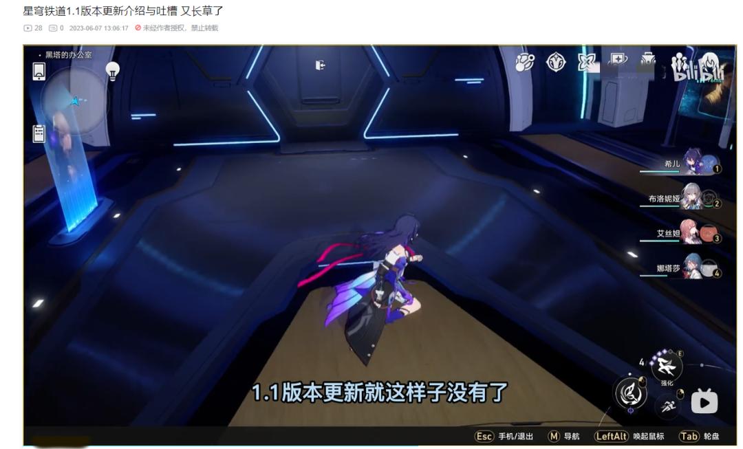 从玩家反馈和剧情实录来看,《崩坏:星穹铁道》1.0版本主线内容量在12-14小时,支线/同行任务在8-10小时,游戏时长在30小时左右。而1.1版本不会更新主线,这就意味着会有大概80天的主线停更。相较而言,《原神》的成功,1.1版本主线「未归的熄星」的演绎功不可没。《崩坏:星穹铁道》的内容更新量也令很多玩家质疑“这产能不像米哈游”。