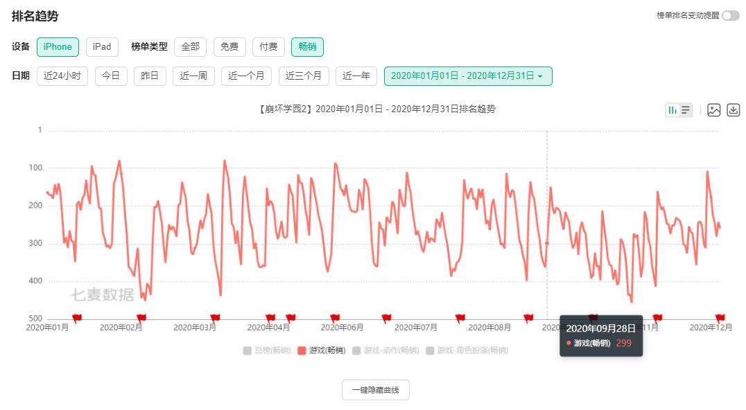 但从下载指数上,也就是iOS游戏免费榜来看,「景元」卡池并没有带来回升,而「银狼」卡池带来的免费榜回升也并不明显,只是刚刚回到了30名之内。