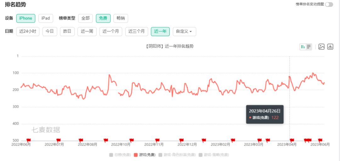 玩法同为半即时回合制的《阴阳师》当属直接竞争对手,该游戏收入并没有因《崩坏:星穹铁道》上线而下滑,反而靠着新的联动和角色畅销榜来到了近三个月新高,免费榜迎来了近一年新高。