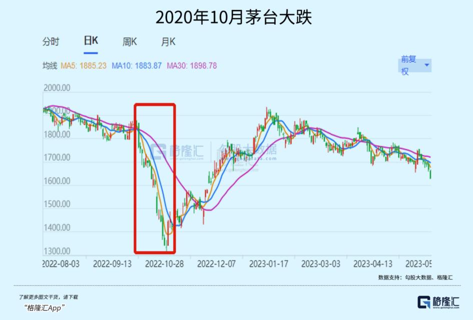 以大家最为熟悉的大消费来说。不看不知道,股王贵州茅台快跌破1600了,从上一轮强势反弹快到2000,到现在快跌没了2成,从技术指标上看,已经到达熊市指标线。