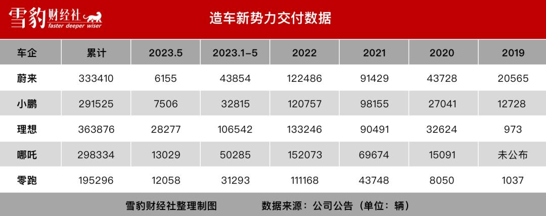 2022年,在主要造车新势力中,在售车型最多的蔚来总交付量仅排第三,位列哪吒和理想之后,并有3个月垫底;在“蔚小理”中,垫底时间达到6个月。