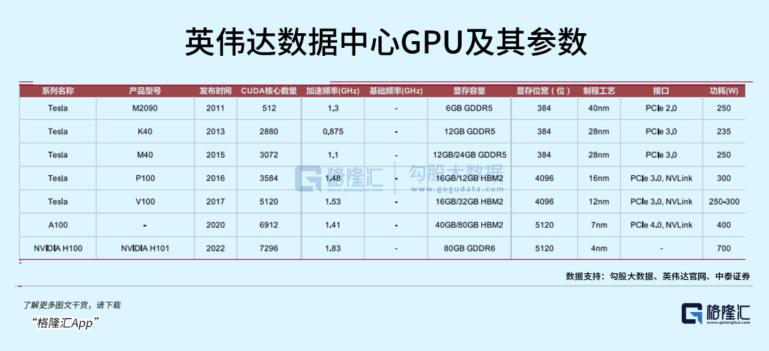而从11年Tesla M2090开始,数据中心产品GPU一直在更新迭代,先后推出Volta、Ampere、Hopper等针对高性能训练计算和AI训练的架构,保持每两年推出一代新产品的速度,浮点算力也从7.8 TFLOPS增至30 TFLOPS,涨幅接近4倍。
