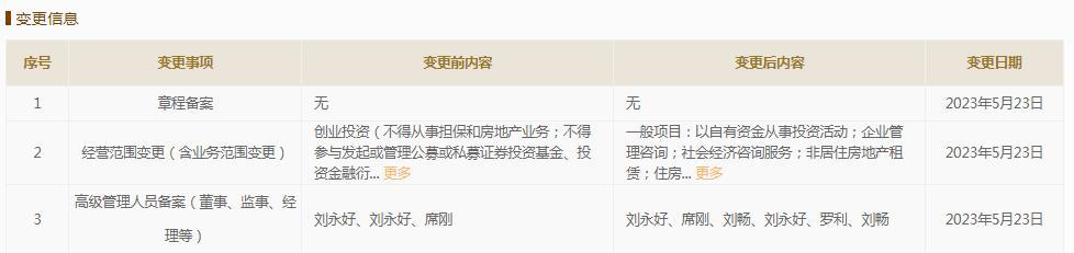 在接班十年的节点上,刘永好正式将投资业务交由女儿刘畅打理。此次的工商变更,意味着刘永好更进一步向刘畅让渡掌门权杖。