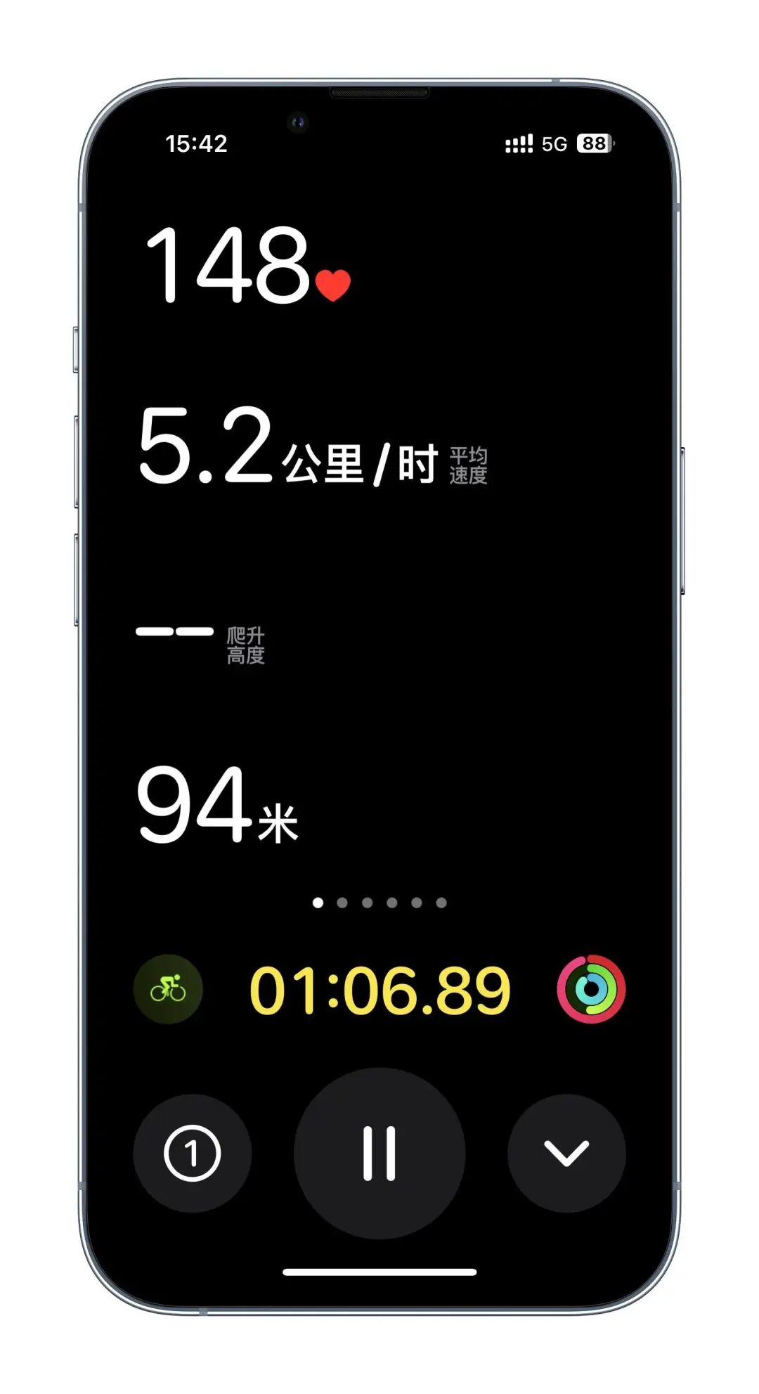 Apple Watch 上的数据显示同样得到了全面优化,可以实时监控你的运动功率,不过功率必须达到一定速度才能显示,日常通勤很难达到心率范围。