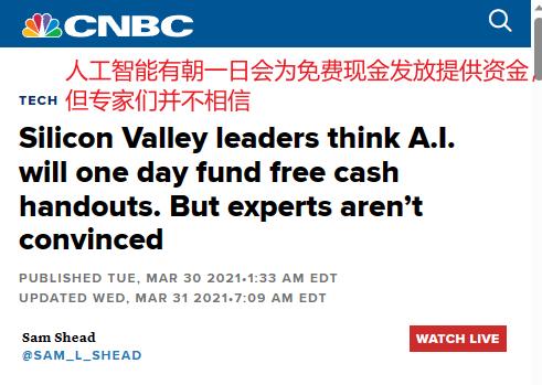 CNBC:Silicon Valley leaders think A.I. will one day fund free cash handouts. But experts aren’t convinced