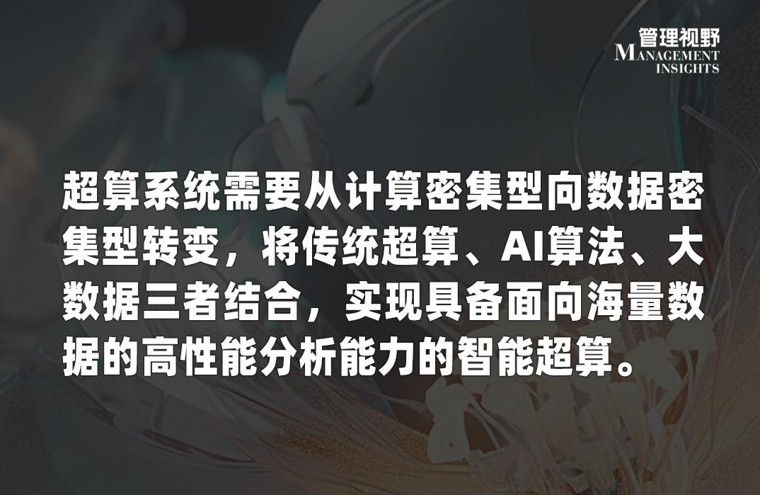 面对蓬勃发展的大数据、AI技术,超算另一个重要的发展方向就是与AI发展结合的智能超算。传统超算主要是计算密集型的超算系统,主要用于计算量大、数据量小的大规模浮点型运算,面对大数据、AI的海量非结构化数据的场景有一定的局限性。因此,超算系统需要从计算密集型向数据密集型转变,将传统超算、AI算法、大数据三者结合,实现具备面向海量数据的高性能分析能力的智能超算。