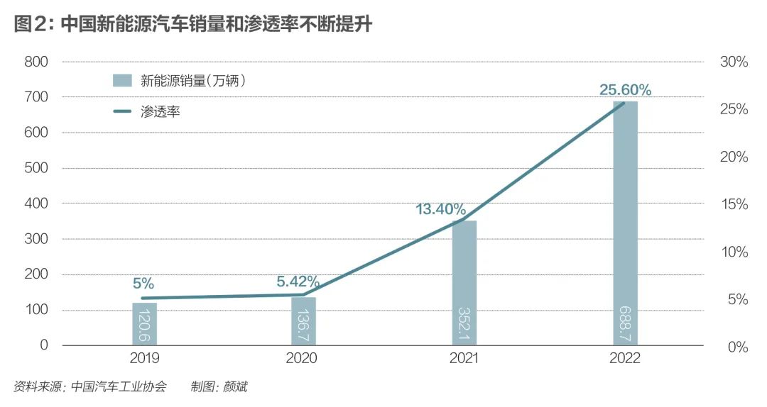 2013年之后,电动化风起。2022年中国新能源车达到了惊人的25.6%的渗透率,新能源车在产销统计上有了实际意义。