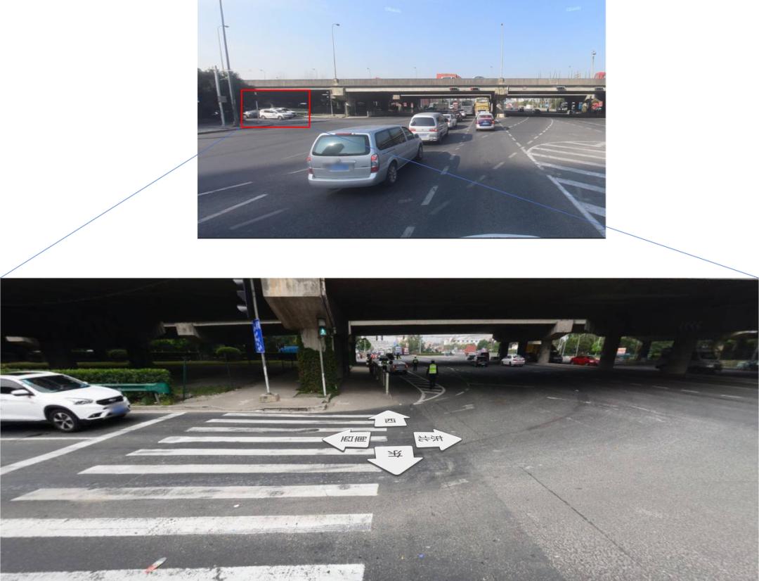 问:图中白车若需向西,它应该怎么开?(图自百度街景)